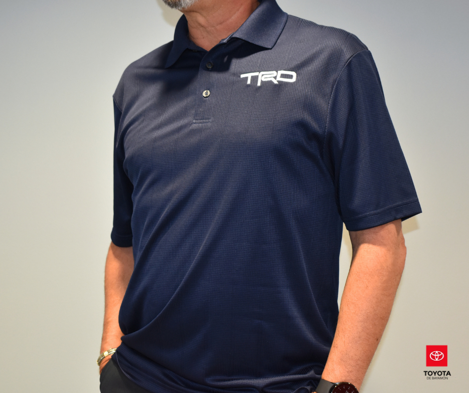 TRD Polo Navy Blue, elegante polo de sutil textura color azul marino. Además, te sentirás tan fresco como luces gracias al tejido que absorbe la humedad. Plaqueta de tres botones con botones tono humo perlado. 100% poliéster.